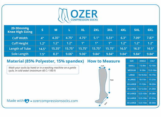 (1 pair) Ozer 20-30mmHg Compression Socks Stockings Medical Knee High Mens and Women's S-6XL